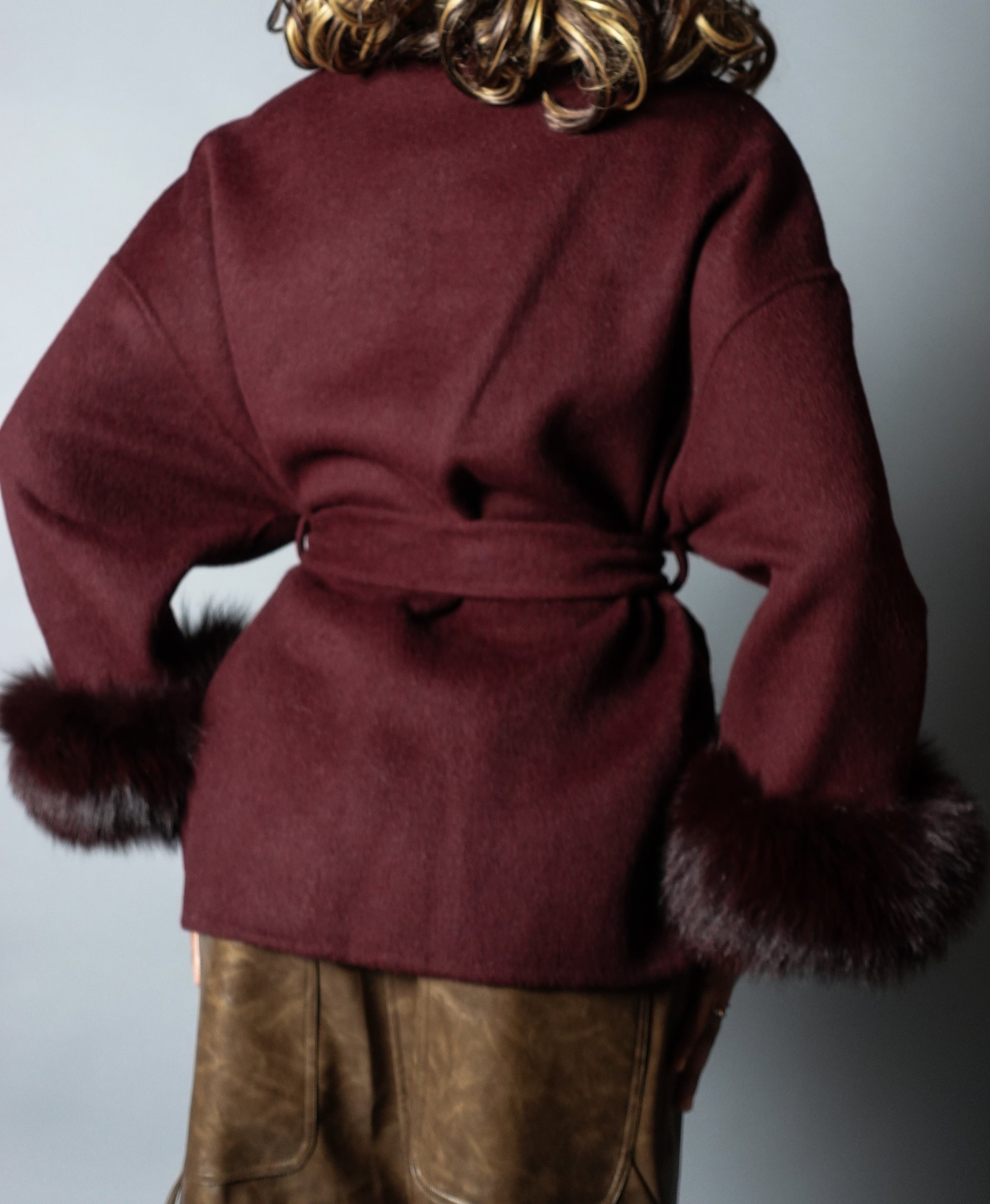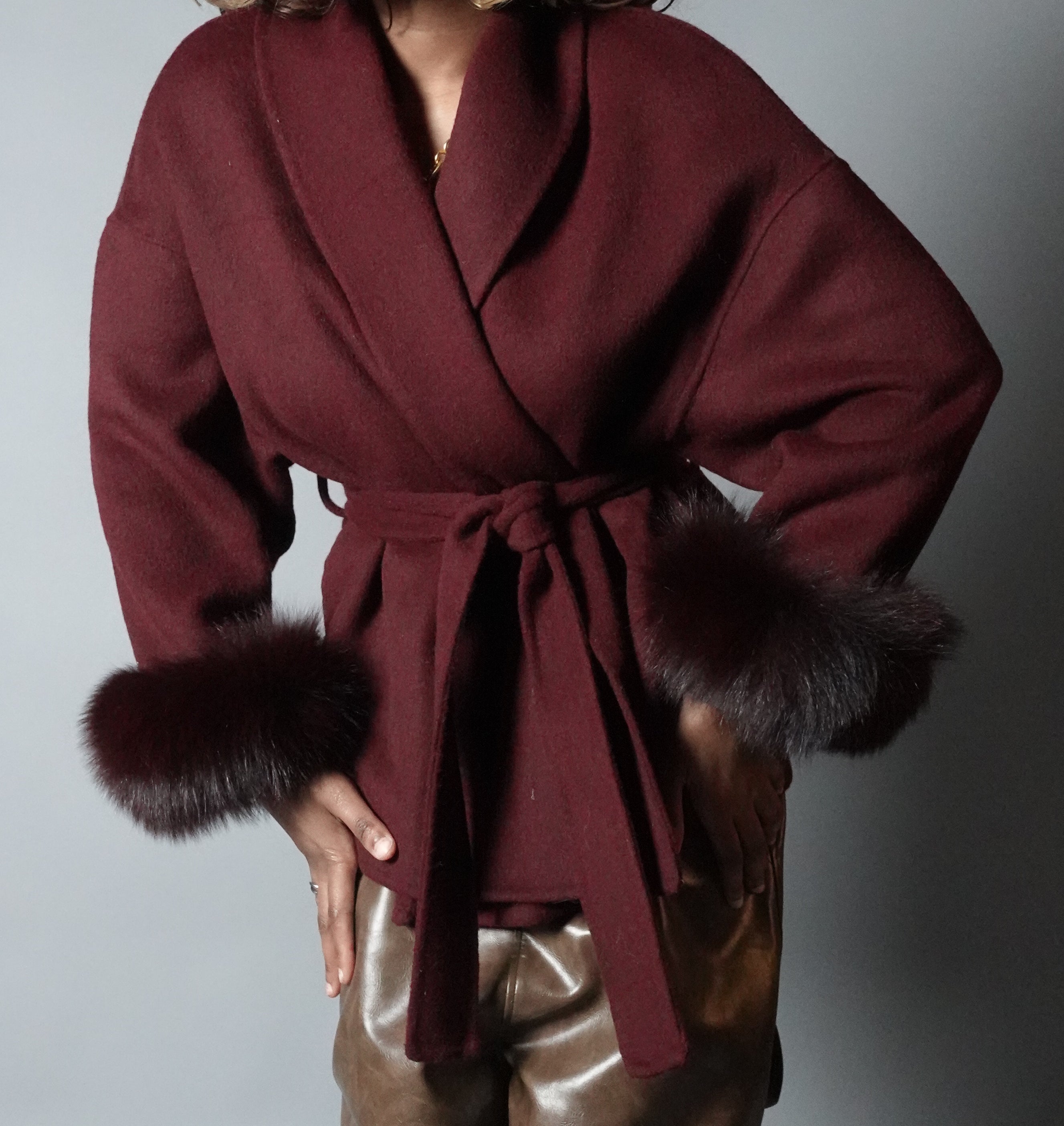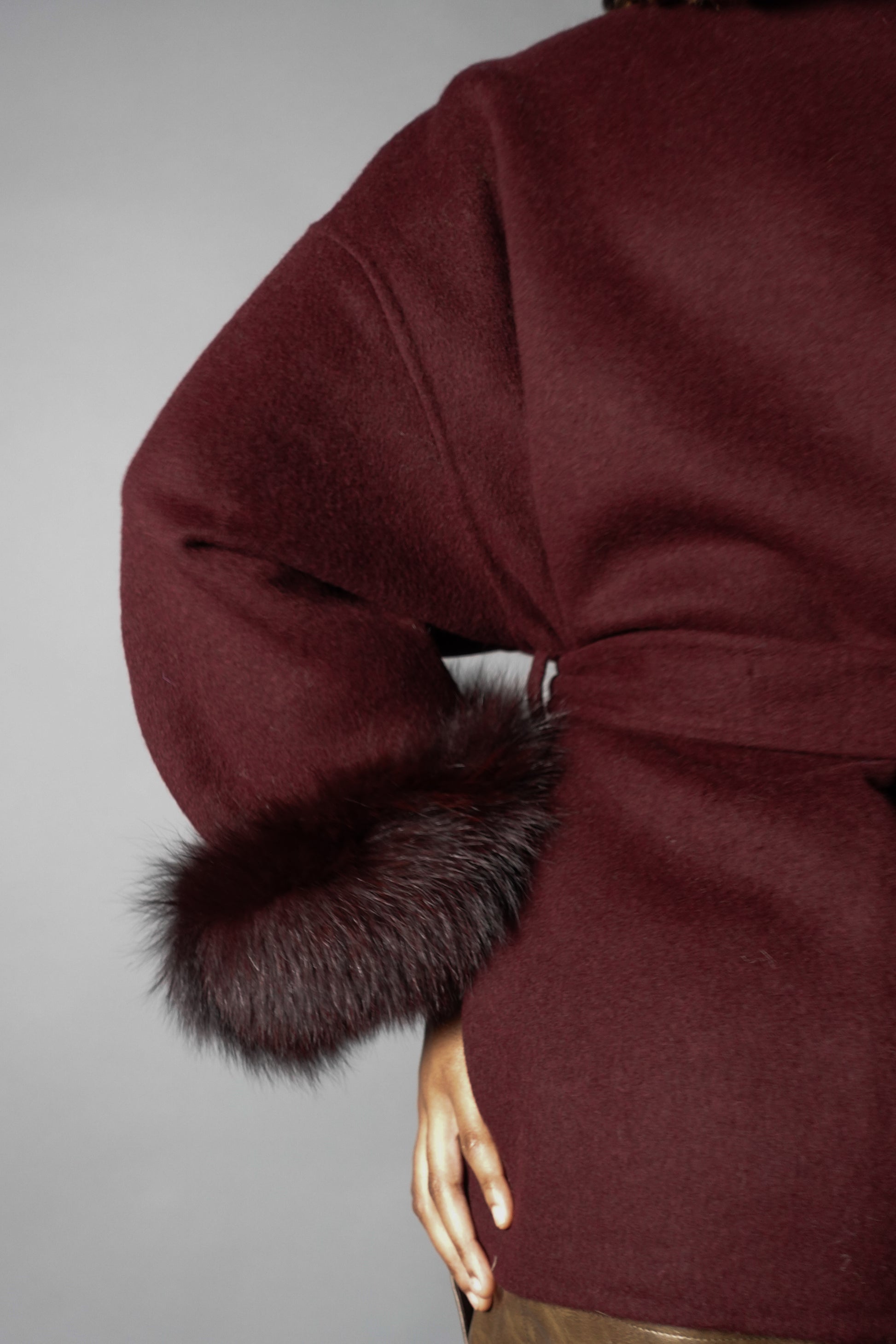 Coat Double Cashmere Blend Wrap W/ Faux Fur Cuff