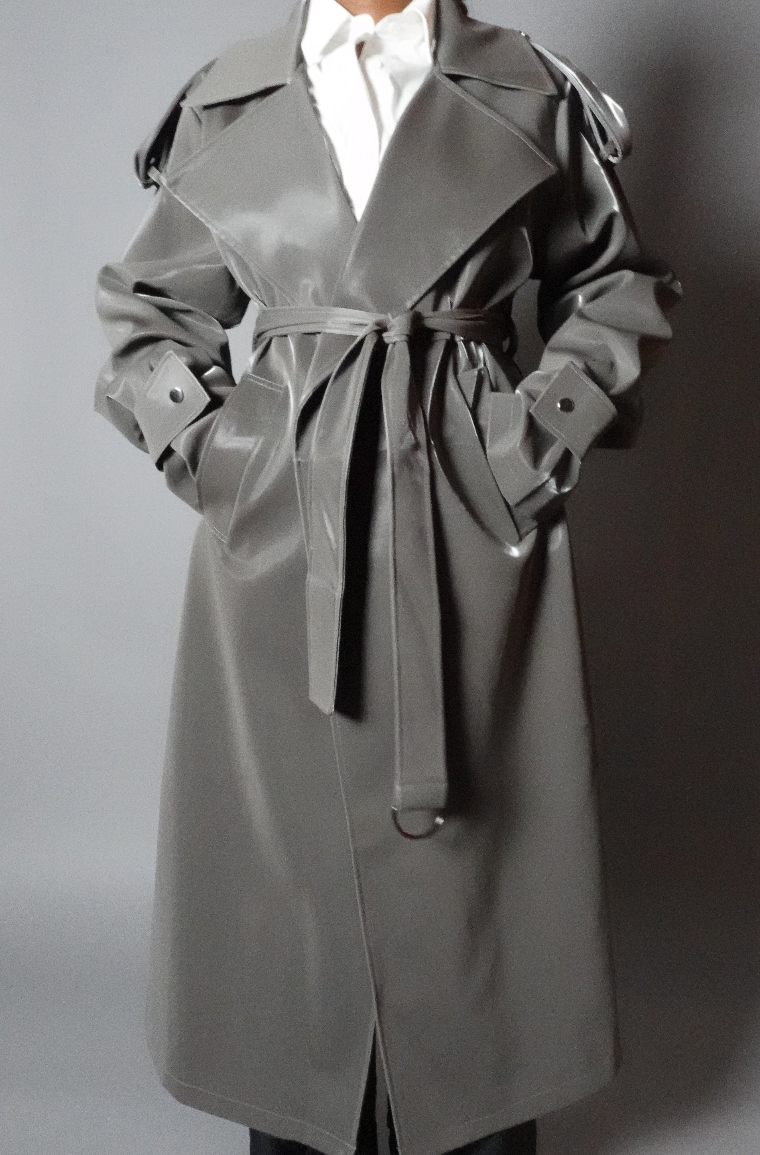 Silver Metallic Iridescent Trench Oversized